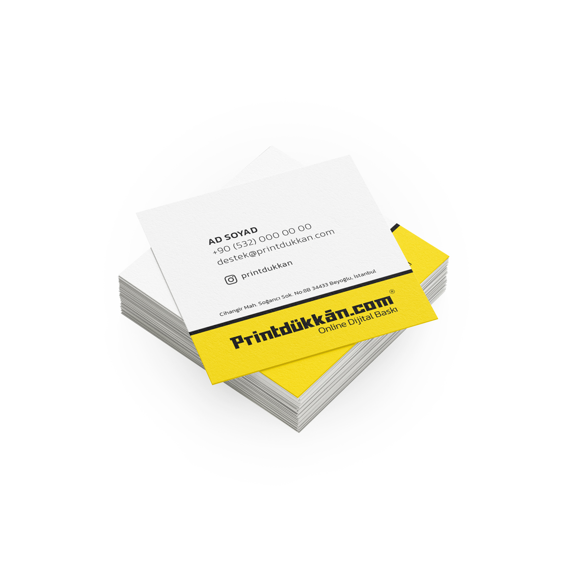 Kartvizit kategorimiz arasında öne çıkan bu model, kartvizit baskı kalitesi ve özgün tasarım anlayışıyla tercih edilir. Kare formatta kartvizit bastırma sürecinde hızlı ve güvenilir çözümler sunarken, fiyatlarıyla da bütçenize uygun seçenekler sağlar. Özellikle acil kartvizit İstanbul ve express kartvizit baskı hizmetlerimizle zaman kaybetmeden elinizde olur.